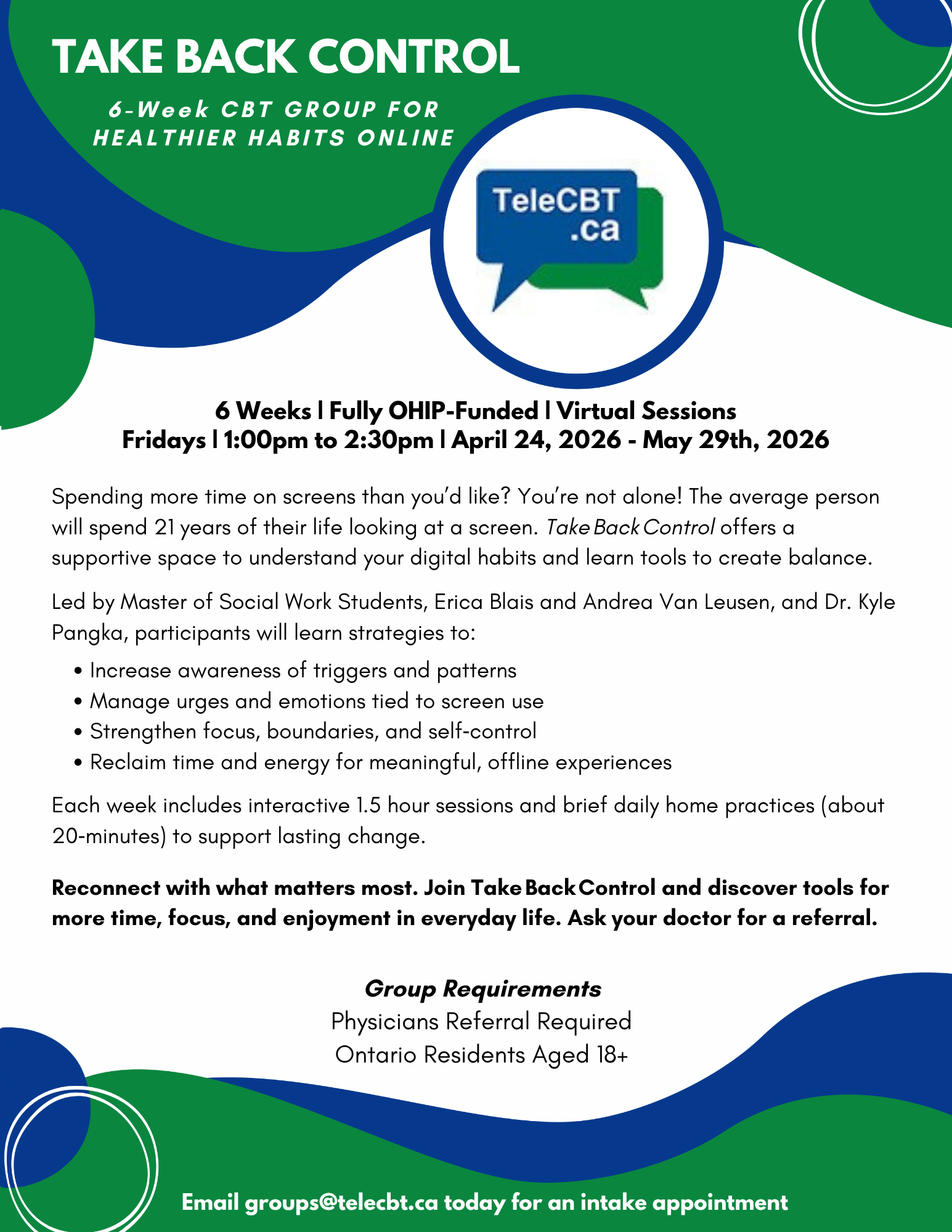 If you would like further information, please email groups@telecbt.ca or call 888 468-6178 x17